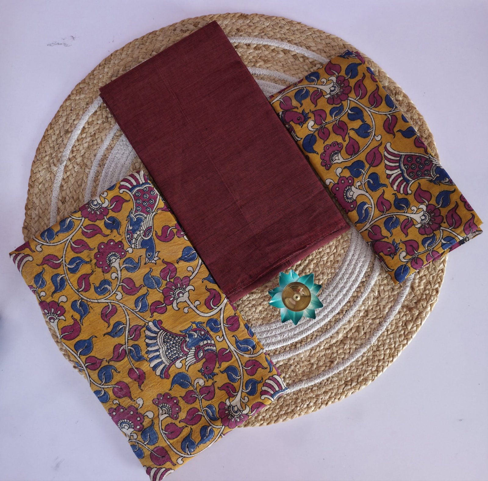 Elevate your ethnic wardrobe with our premium Kalamkari sets. These outfits feature a sophisticated blend of traditional screen printed inspired patterns and minimalist solids, perfect for a refined, professional look.