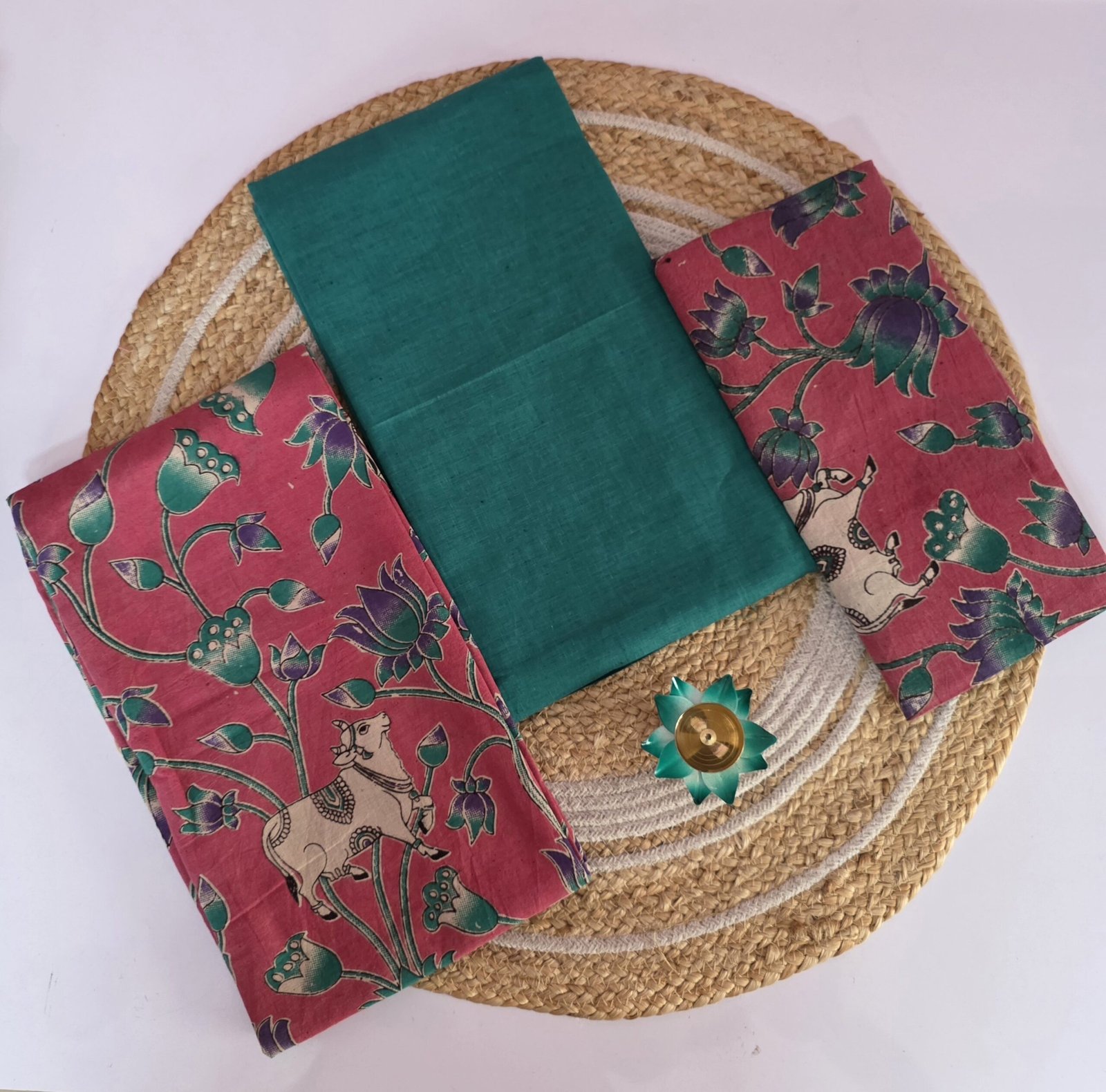 - Artistic Details: Traditional Kalamkari motifs and intricate floral vine patterns.(Screen Printed)
